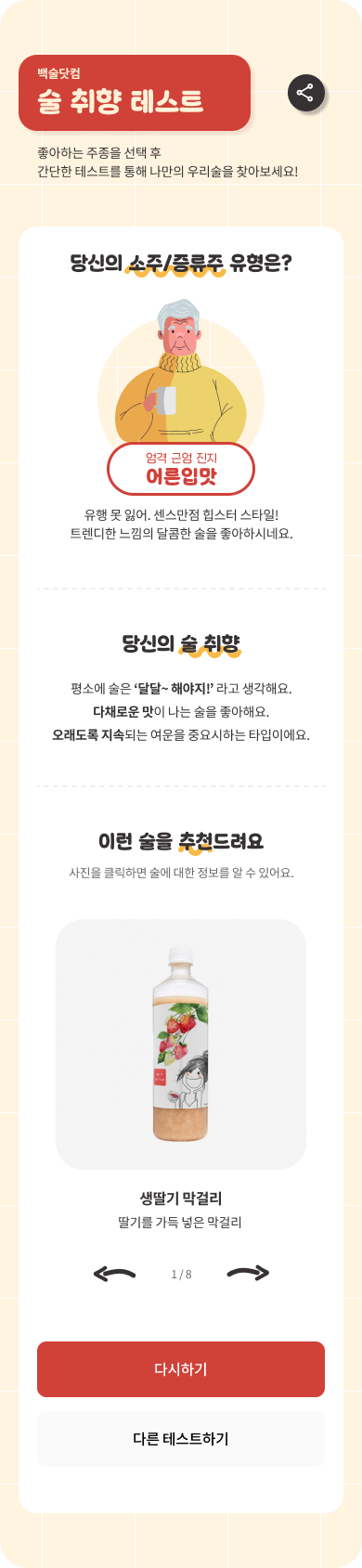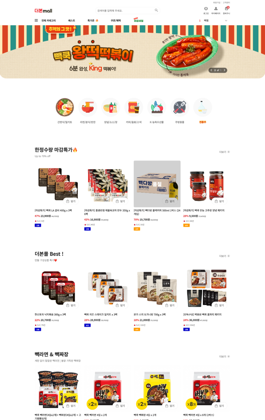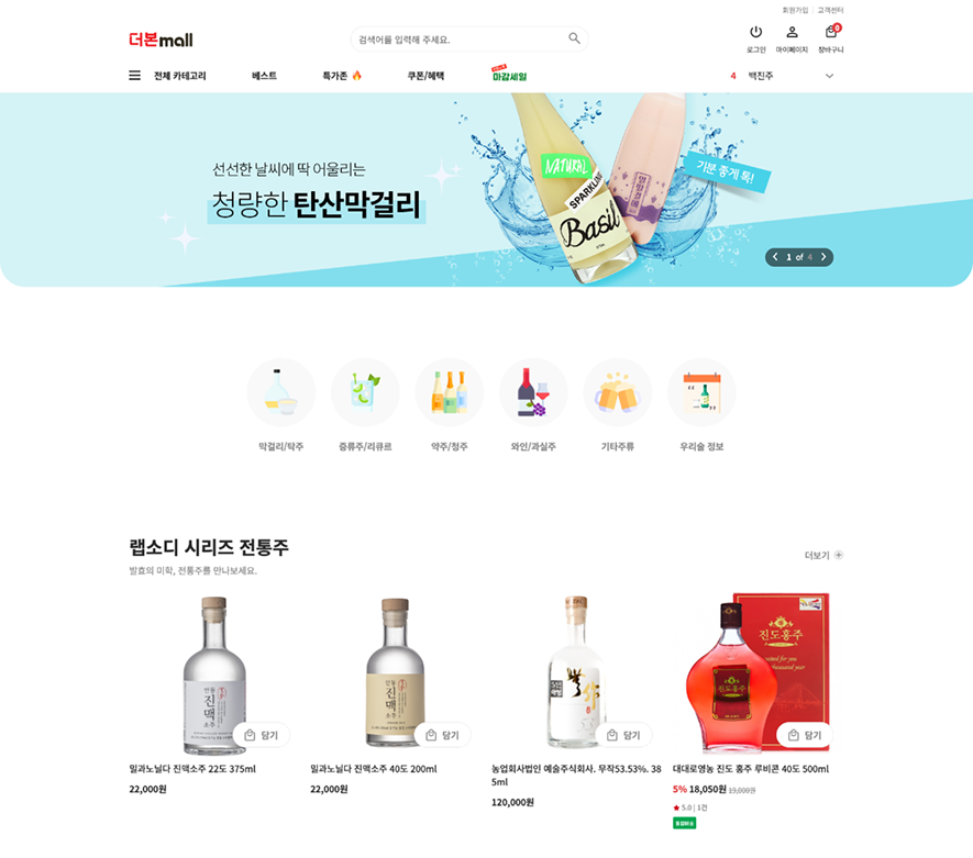 더본몰은 홍콩반점, 빽다방 등 다양한 인기 브랜드를 보유한 더본그룹의 공식 쇼핑몰입니다. 주요 기능으로는 실시간 검색순위를 반영해 인기 상품을 빠르게 확인할 수 있고, 고객 취향에 맞춘 맞춤형 술 찾기 서비스를 제공합니다. 또한, 간단한 문진을 통해 개인의 기호와 상황에 맞는 술을 추천해주는 AI 기반 맞춤 추천 기능도 탑재되어 있습니다.